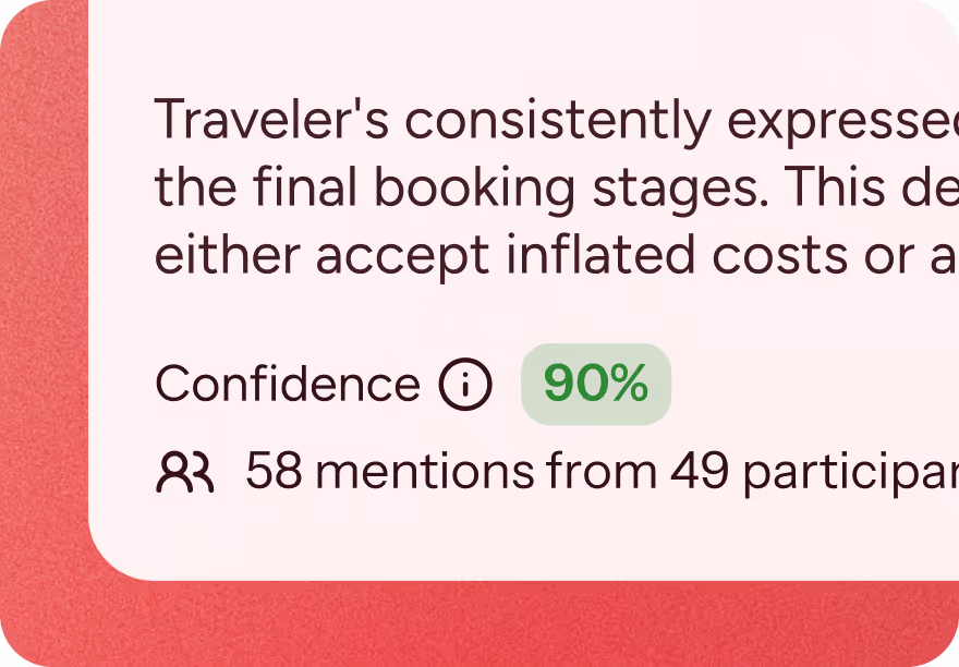 Every insight traces back to verified participants having real conversations. Click any finding to see video clips, exact quotes, and confidence scores.
