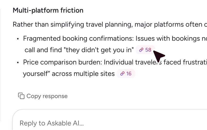 Developed by researchers and AI engineers, Askable AI is purpose-built for research with capabilities generic AI tools can’t match.